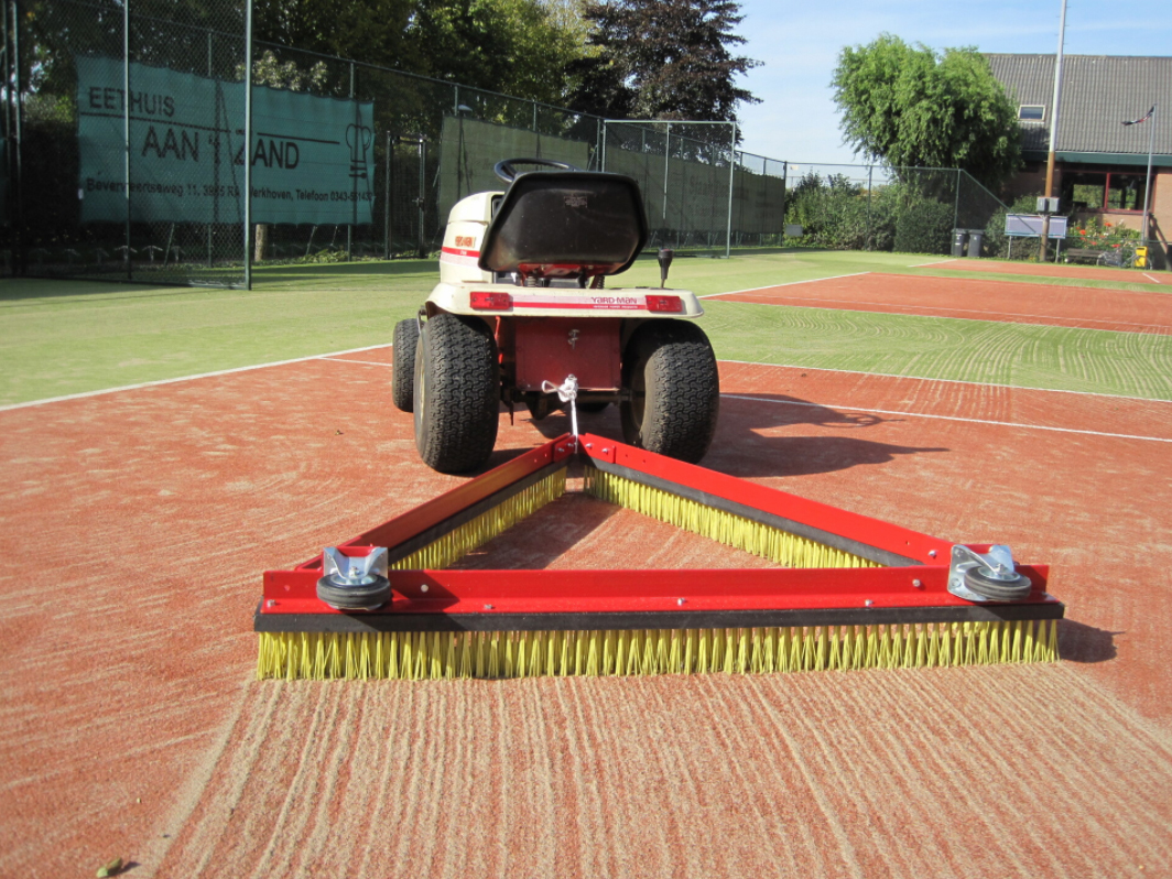 The Short bristle Court Broom is designed with the maintenance of short pile synthetic turf surfaces in mind. The still bristles agitate sand material to decompact the infill while standing flattened pile up to restore playing characteristics