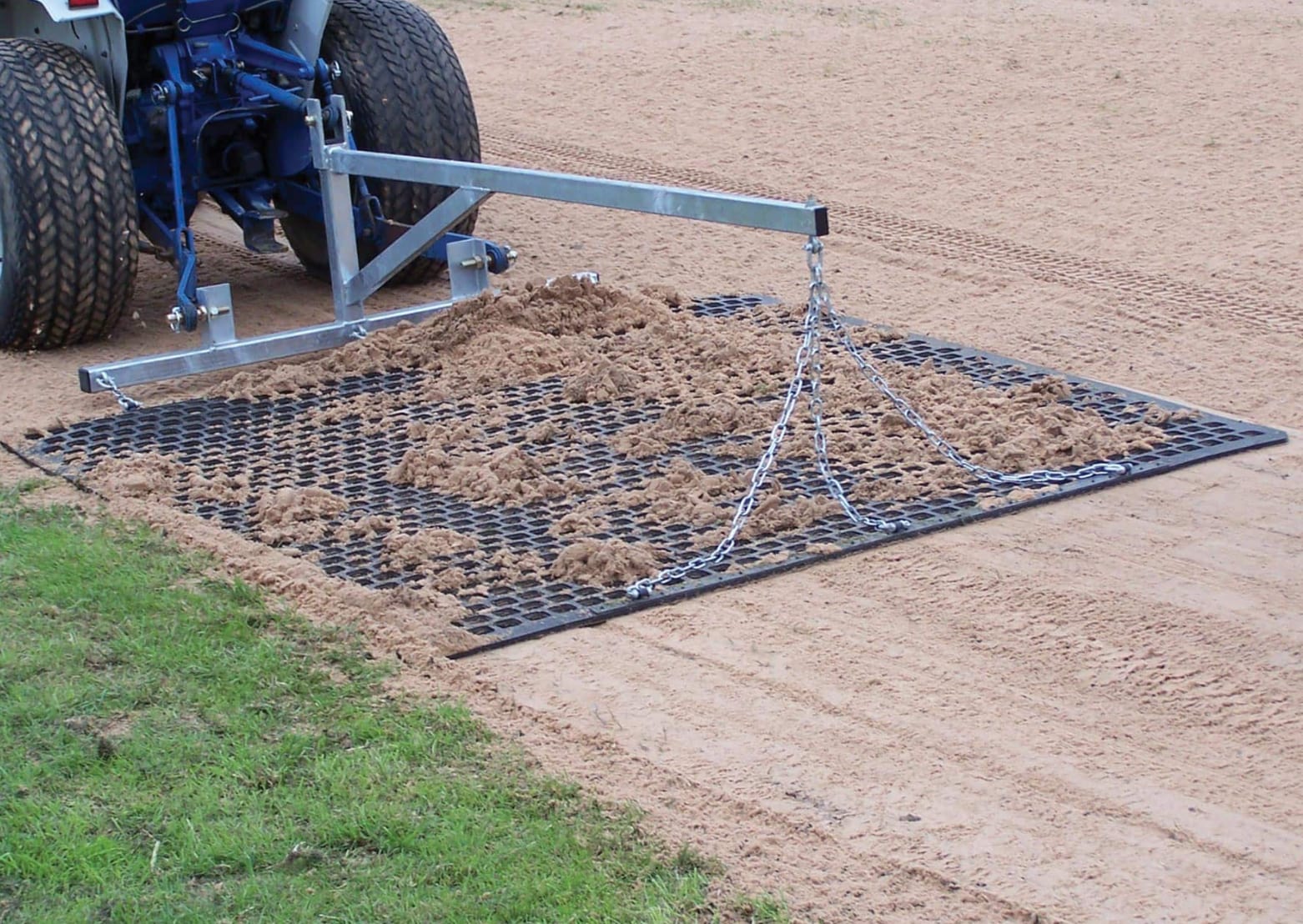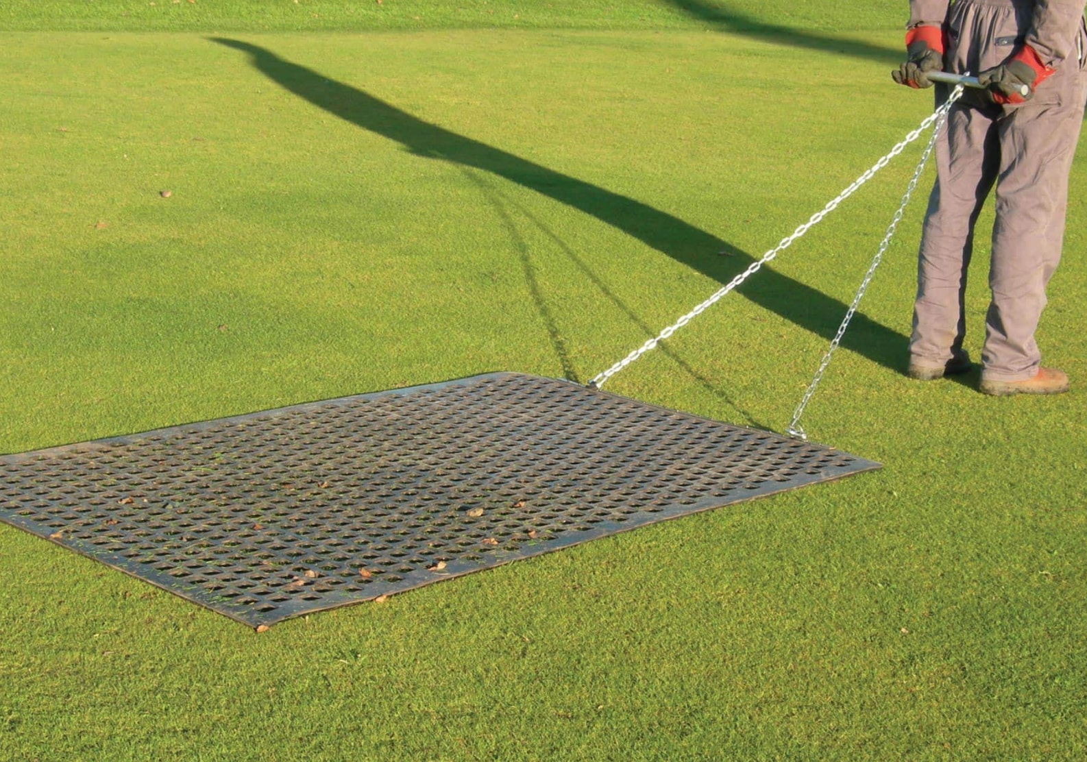 The CAMPEYTM Dragmats come in a variety of different sizes and are available in heavy-duty reinforced rubber or steel construction. Dragmats are ideal for rubbing-in top dressings, dew and clippings dispersal. Small mats can be hand-pulled, while the wider units are more suited to towing on the optional 3-point frame. Available in 4 different widths, and 2 different thicknesses (rubber) for a variety of different handing applications and tasks.
