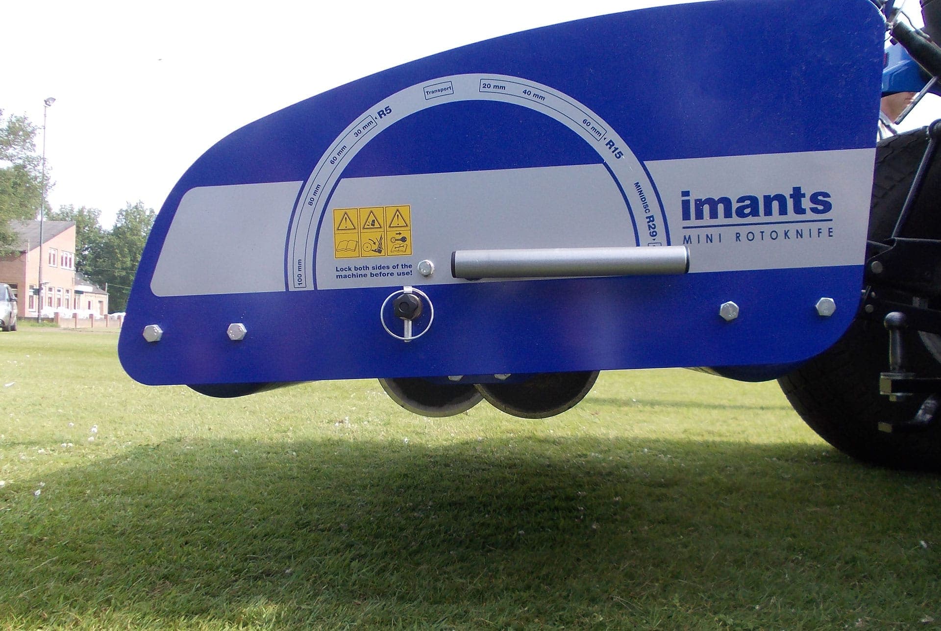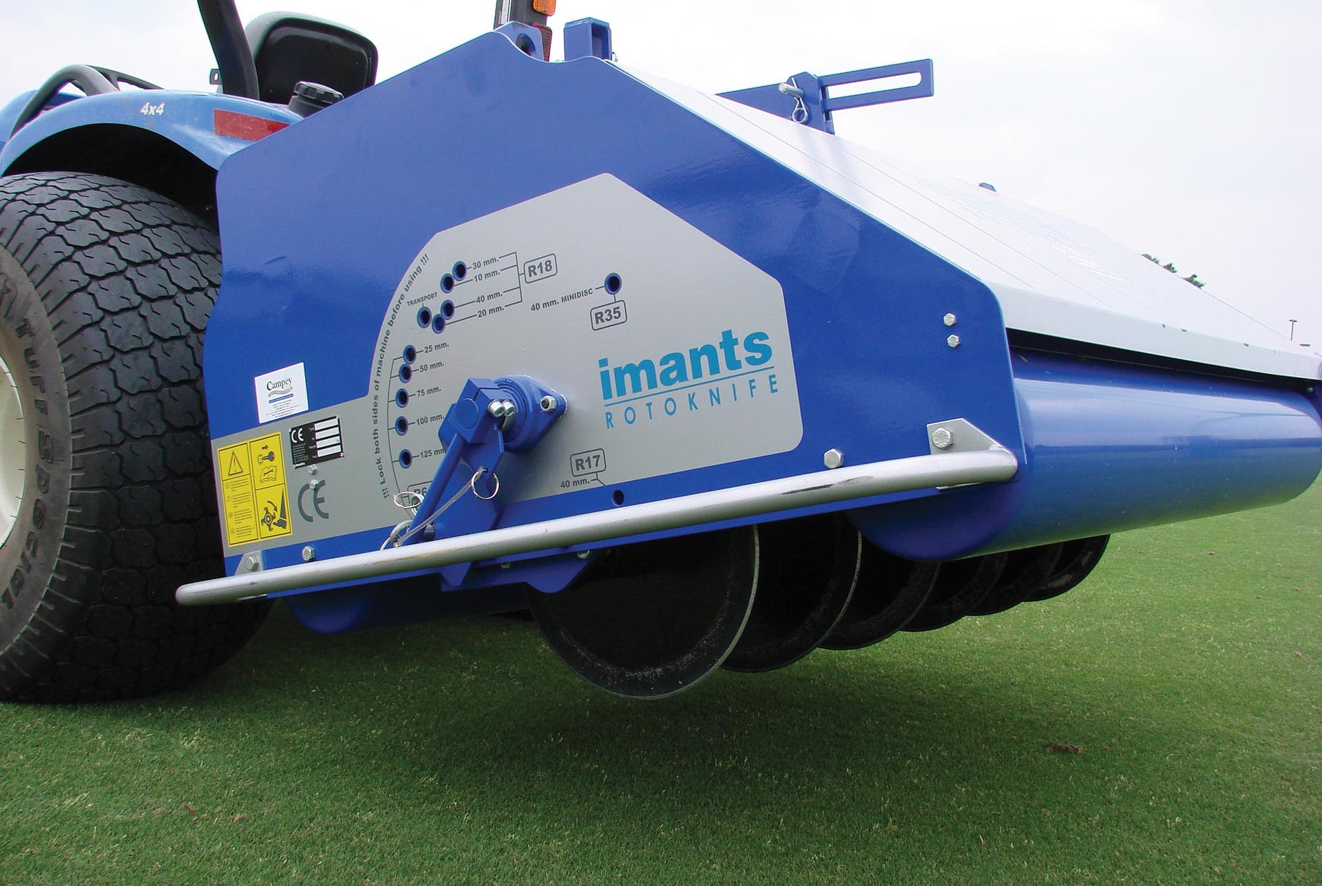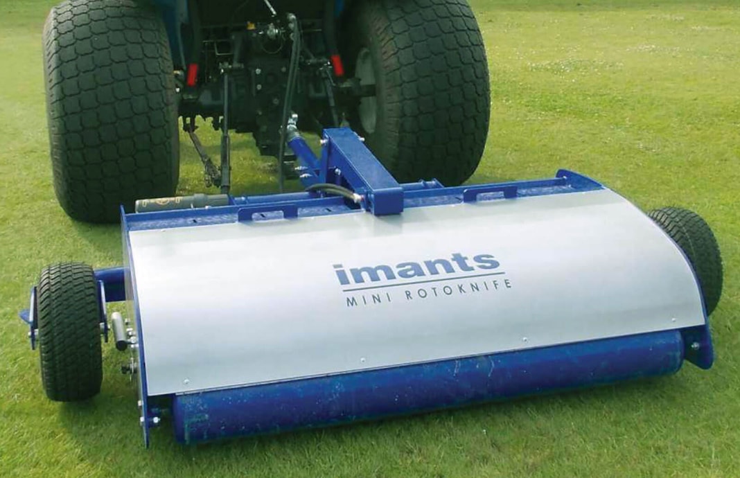 The Imants Mini RotoKnife is a linear disc-aerator, designed to relieve surface compaction, improving aeration, reducing thatch build up and removing surface water. The Mini RotoKnife is fast across the surface and is a versatile rootzone management tool. The disc rotor shaft can be set in 3 positions, giving flexibility in working depth and linear spacing, allowing slitting to a depth of 100mm, or shallow slitting at 50mm spacing. The Mini RotoKnife is available in towed or mounted format and is compatible with most turf trucksters and compact tractors. It is ideal on warm or cool season grasses.