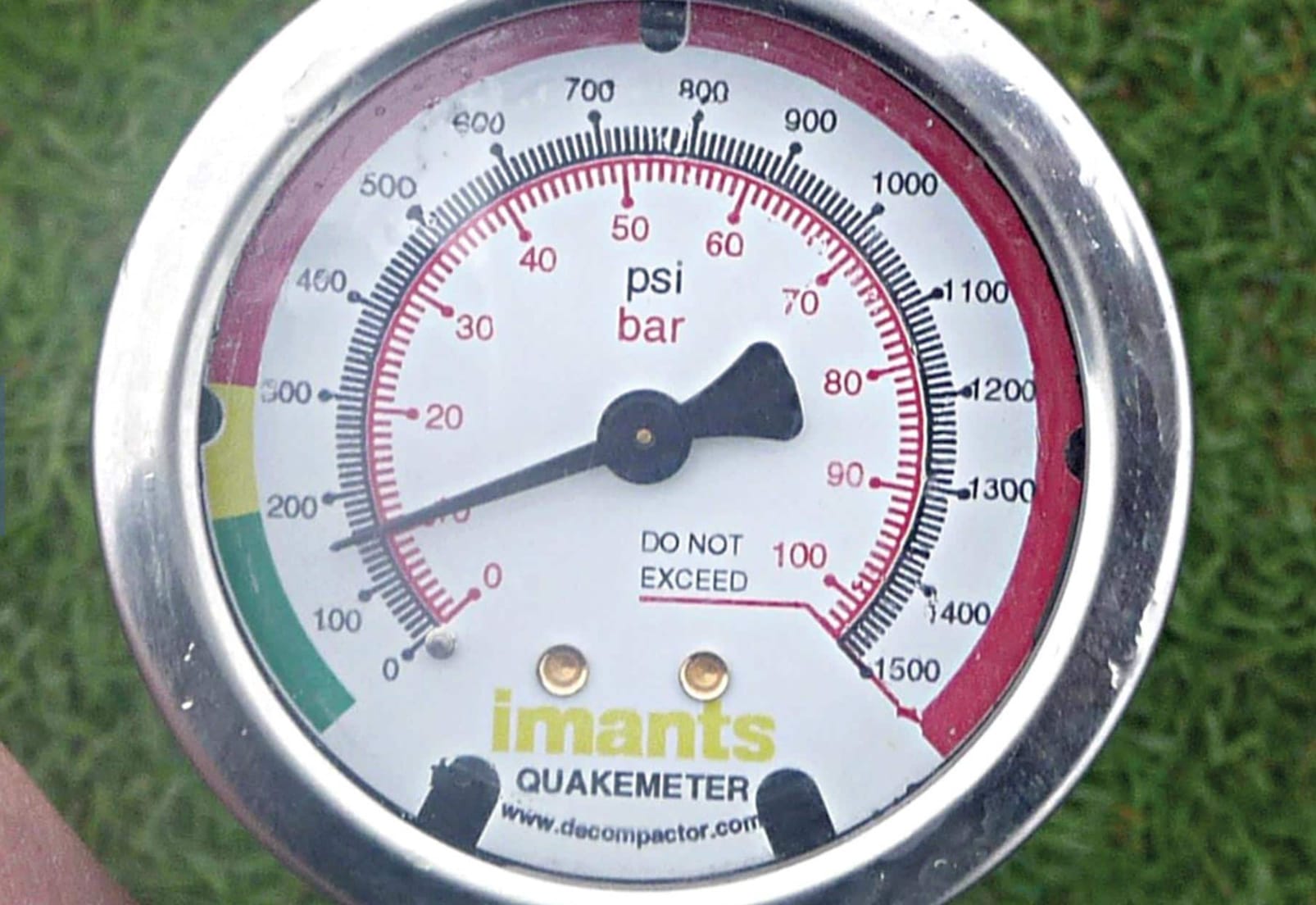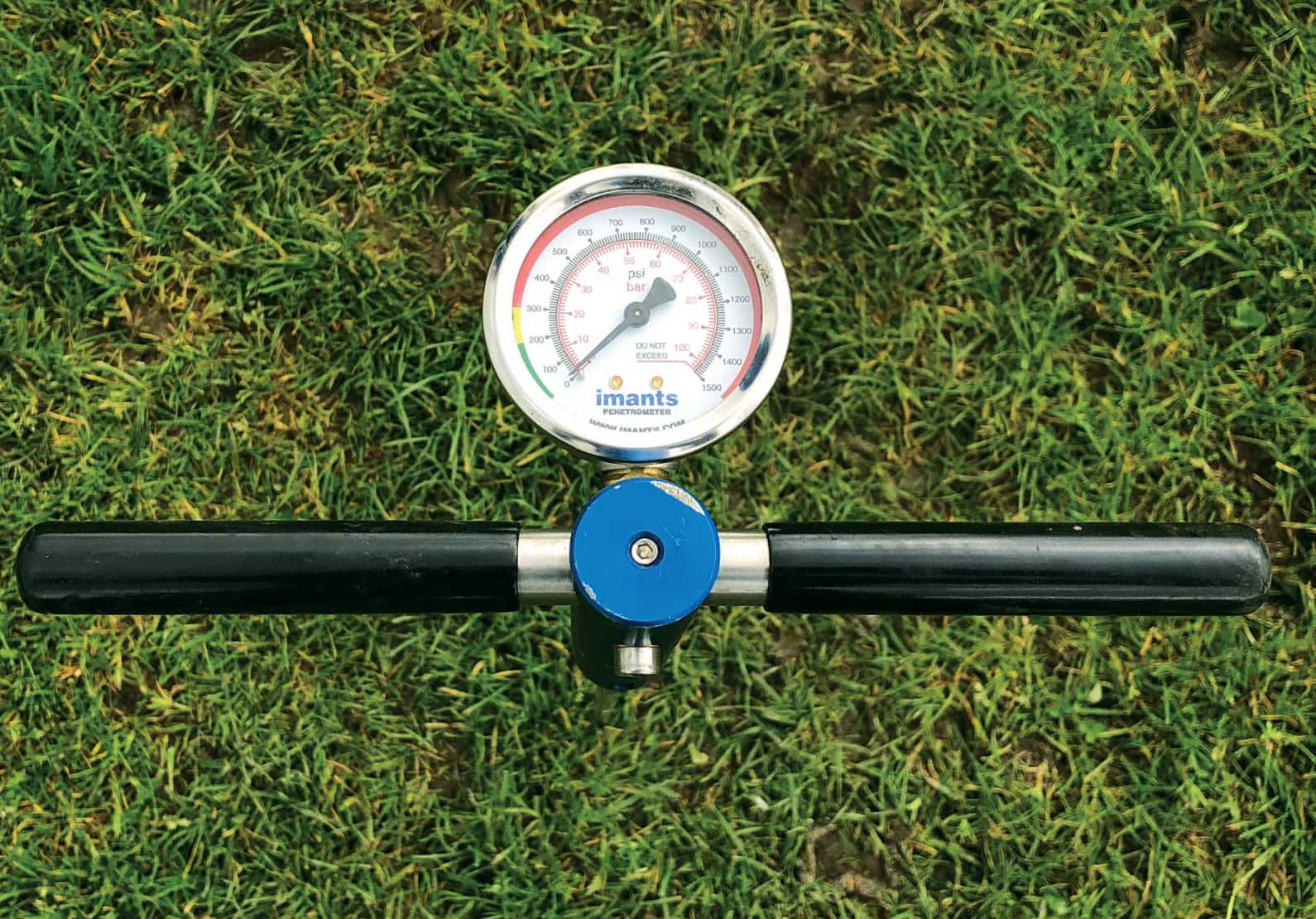 Hand operated professional compaction meter. The Imants penetrometer is a handheld, professional compaction meter to locate and monitor the compaction levels in the soil/rootzone. Understanding the degree of compaction enables the right procedures to be taken to eliminate excessive levels. Lack of air compacted soil is a major problem, as the roots need access to oxygen to survive. As a rule of thumb, compaction greater than 20 bar pressure (285psi) will cause problems and action should be taken to relieve the compaction in the rootzone.