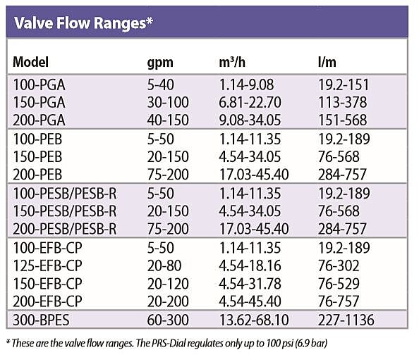 The PRS-Dial is an excellent means of regulating outlet pressure at the valve regardless of incoming pressure fluctuations.The visible scale makes adjustment quick and easy. The regulator fits all Rain Bird PGA, PEB, PESB, PESB-R, EFB-CP, and BPES series valves and maintains a constant outlet pressure between 15 and 100 psi.
