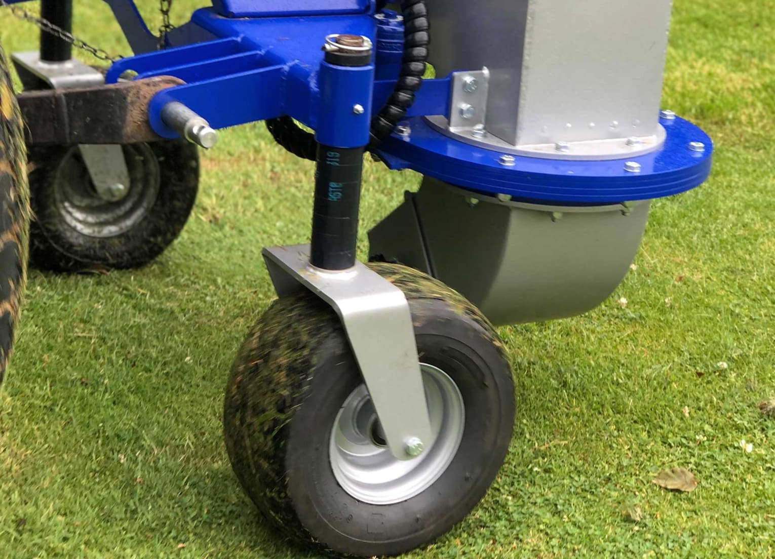 The RotoBlast is a tractor mounted blower, designed to mover leaves grass clippings, thatch, little and other unwanted surface debris from important areas. Typically used for clearing greens and tees, fairways, pathways and other sports turf areas. Attached to the 3-point linkage, the powerful blower is mounted on a wheeled chassis to allow contour following while maintaining a constant nozzle height above the ground. The wheels can be inverted to revert to a fully mounted option if required.
