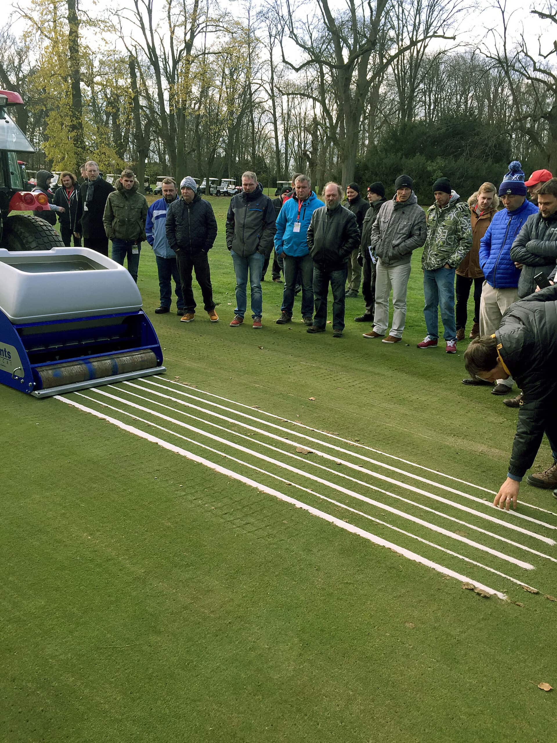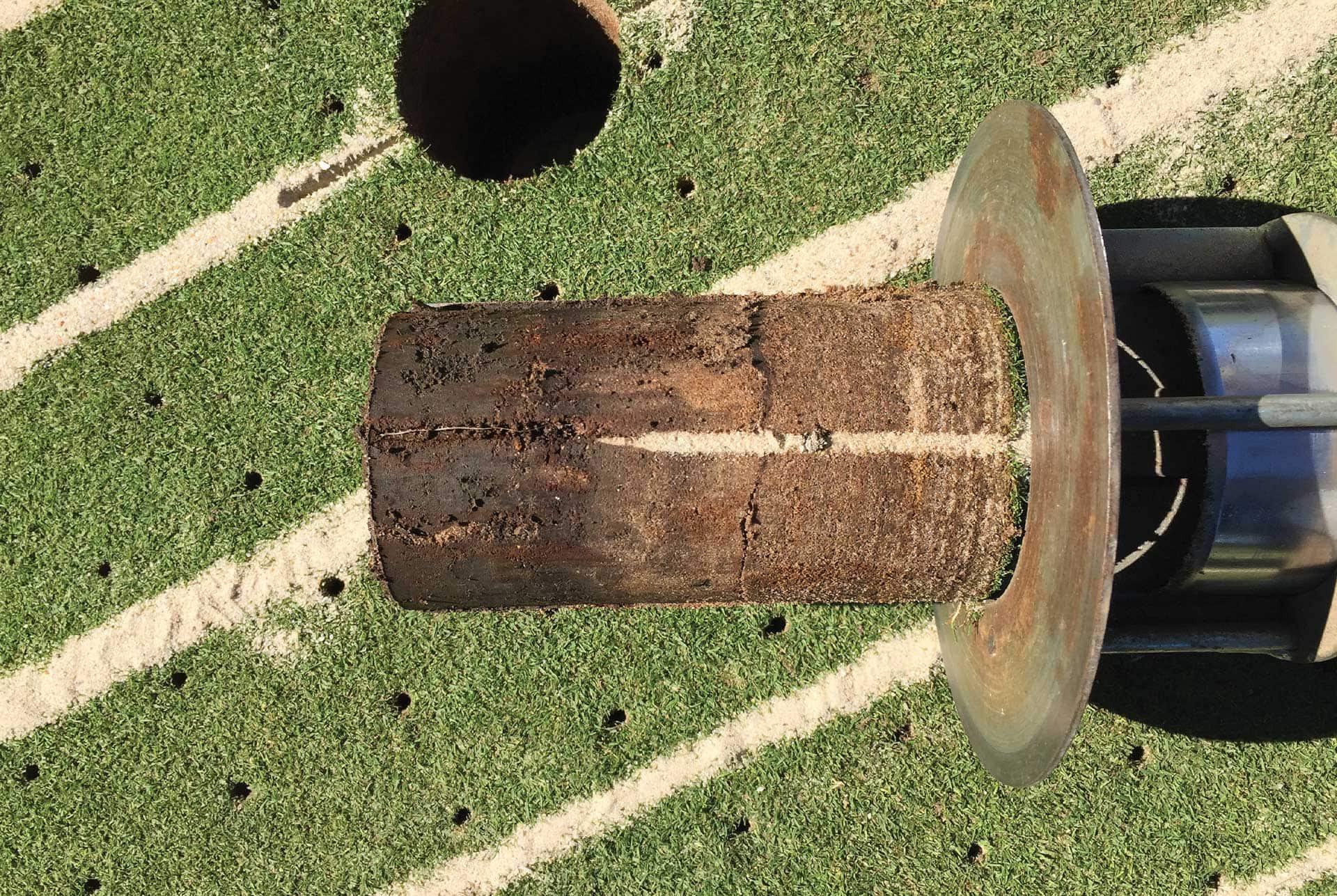 Slitting the surface and introducing sand to improve drainage and enhance the properties of the rootzone