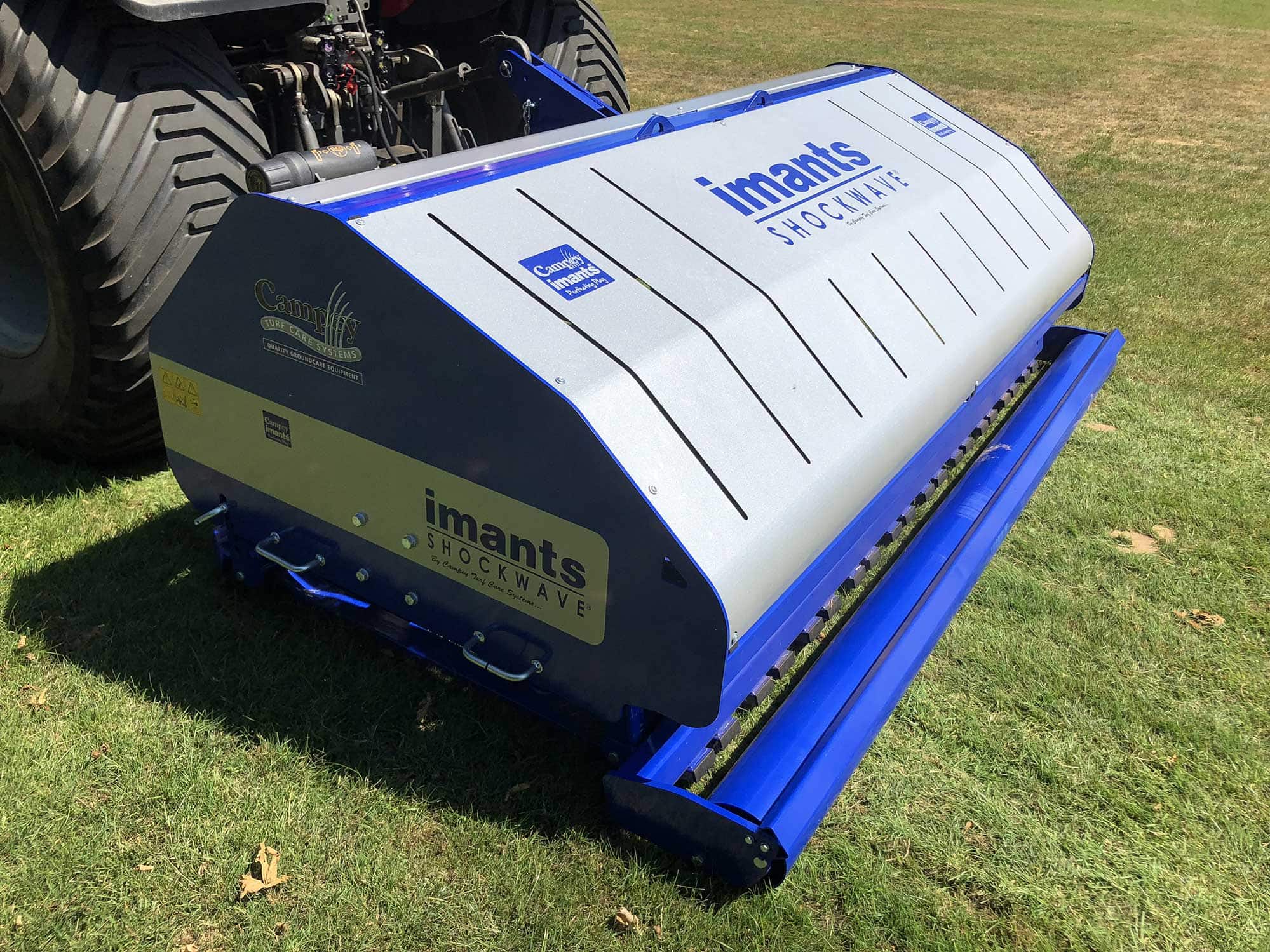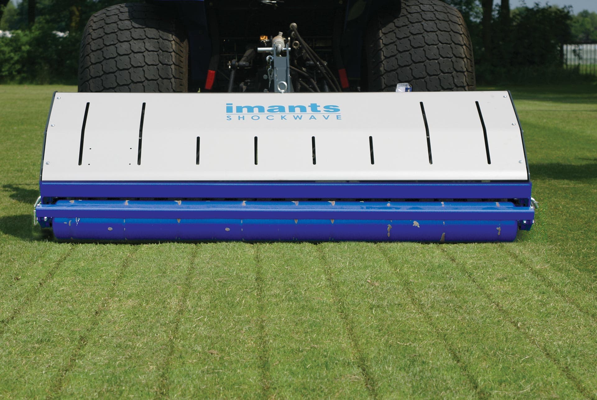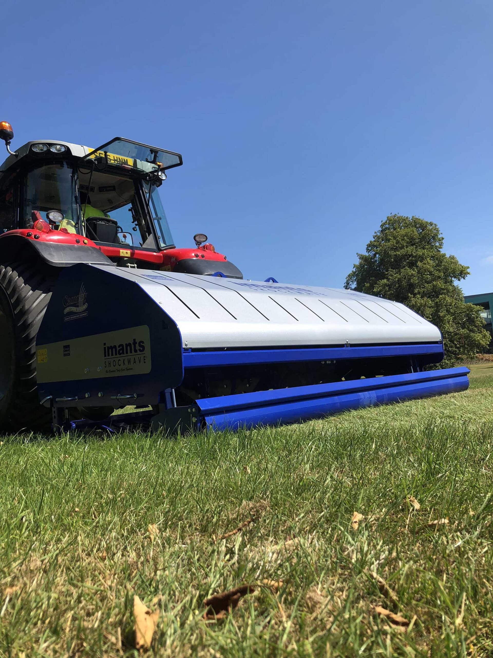 The Imants ShockWave is a linear decompactor to revitalize heavy wear areas by relieving soil compaction, improving aeration and removing surface water. The Imants ShockWave is reputed to be the world’s fastest PTO driven rotary, linear decompactor. The ShockWave is designed for use on fine turf and sports fields. As with all ShockWave models, it features a no-chains, direct drive design, maintenance free ‘sealed for life’ bearings & no shearbolts. The 220 / 275 models are heavy-duty design suitable for contractors and use thicker 15mm knives. It also features hydraulic depth adjustment from the tractor to smooth rear roller.
