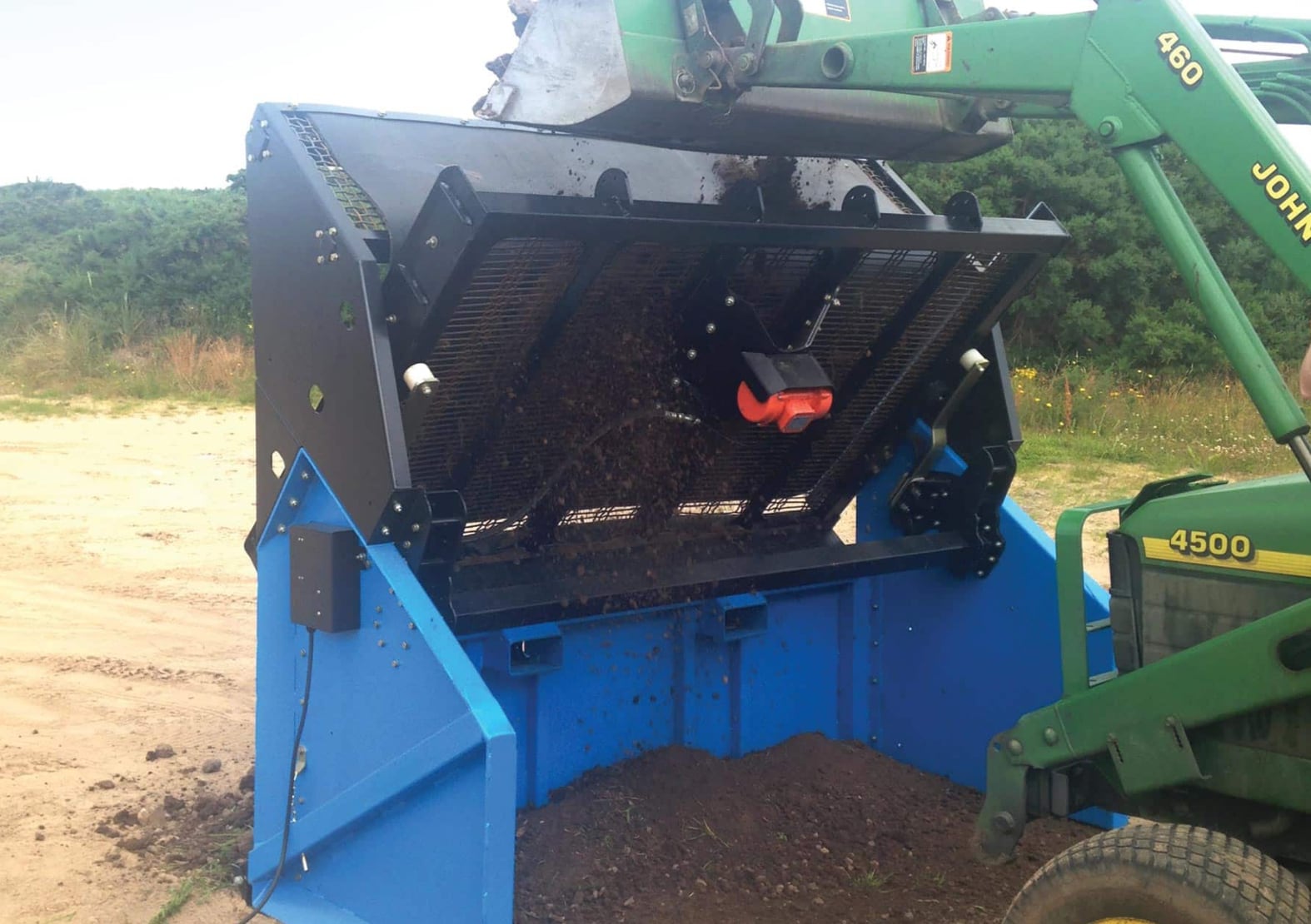 The SLG-78VF is a portable vibratory soil screener, powered by a 110v electric motor to give vibratory screen action and is designed for loading with tractor buckets or skid-steer loaders of up to 78” wide – adjustable screen angle and flow rate. Capable of recycling and screening sand, soil, gravel and various other materials, it is suitable for golf-course, sports field and municipal use. Its high mobility means it can easily be moved around a site. Standard screen size is 19mm, with additional screen sizes available as options.