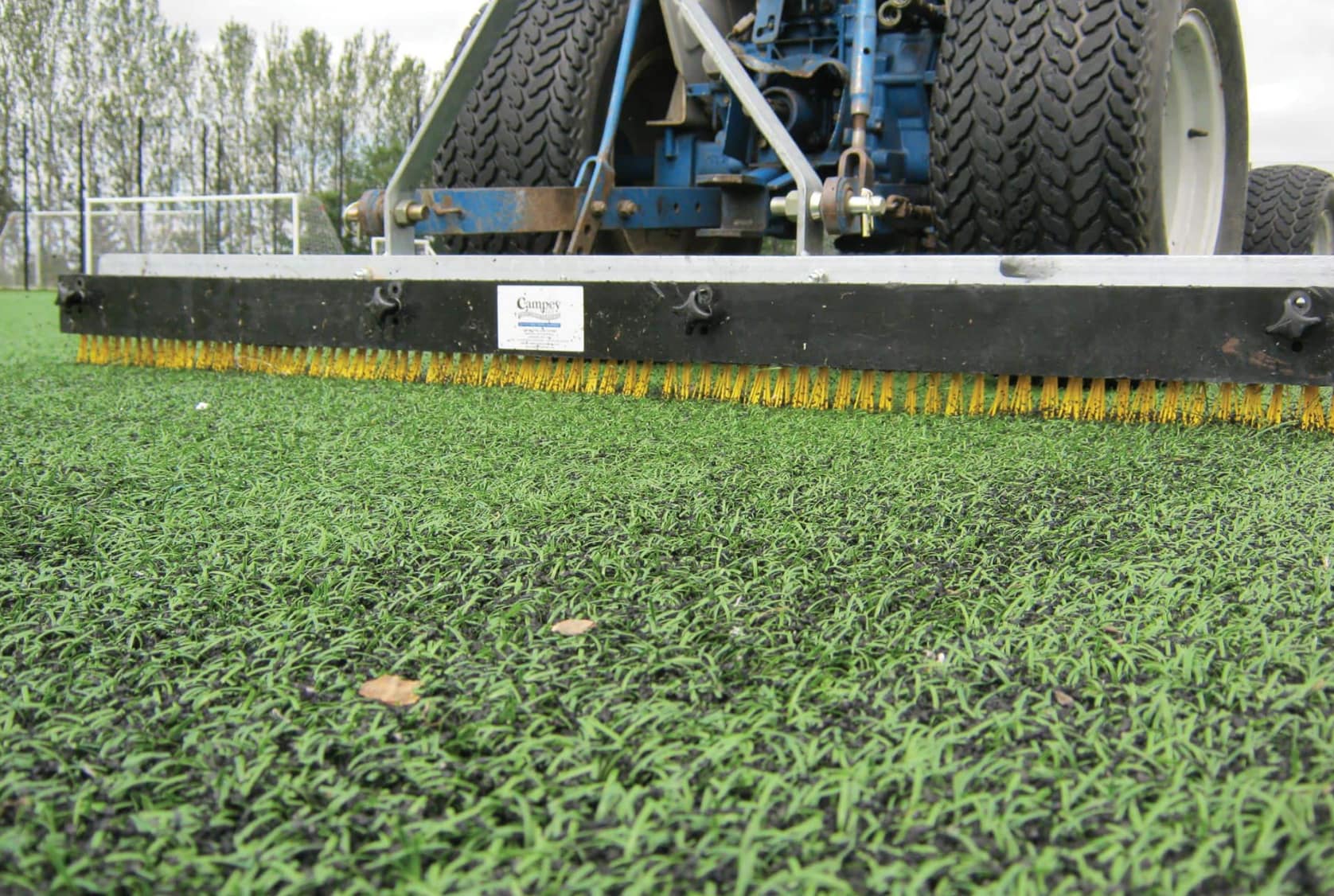 A 3 -point linkage mounted brush suitable for compact tractors of 15hp. All galvanised / plastic construction, stiffness of bristles can be easily altered by adjusting the plastic stiffening board. For regular use on all artificial surfaces, stands up pile and helps to level rubber crumb.
