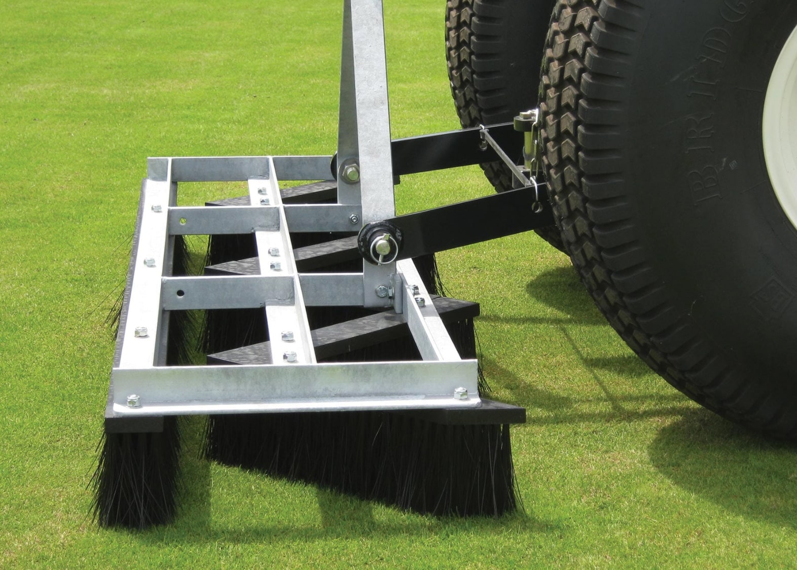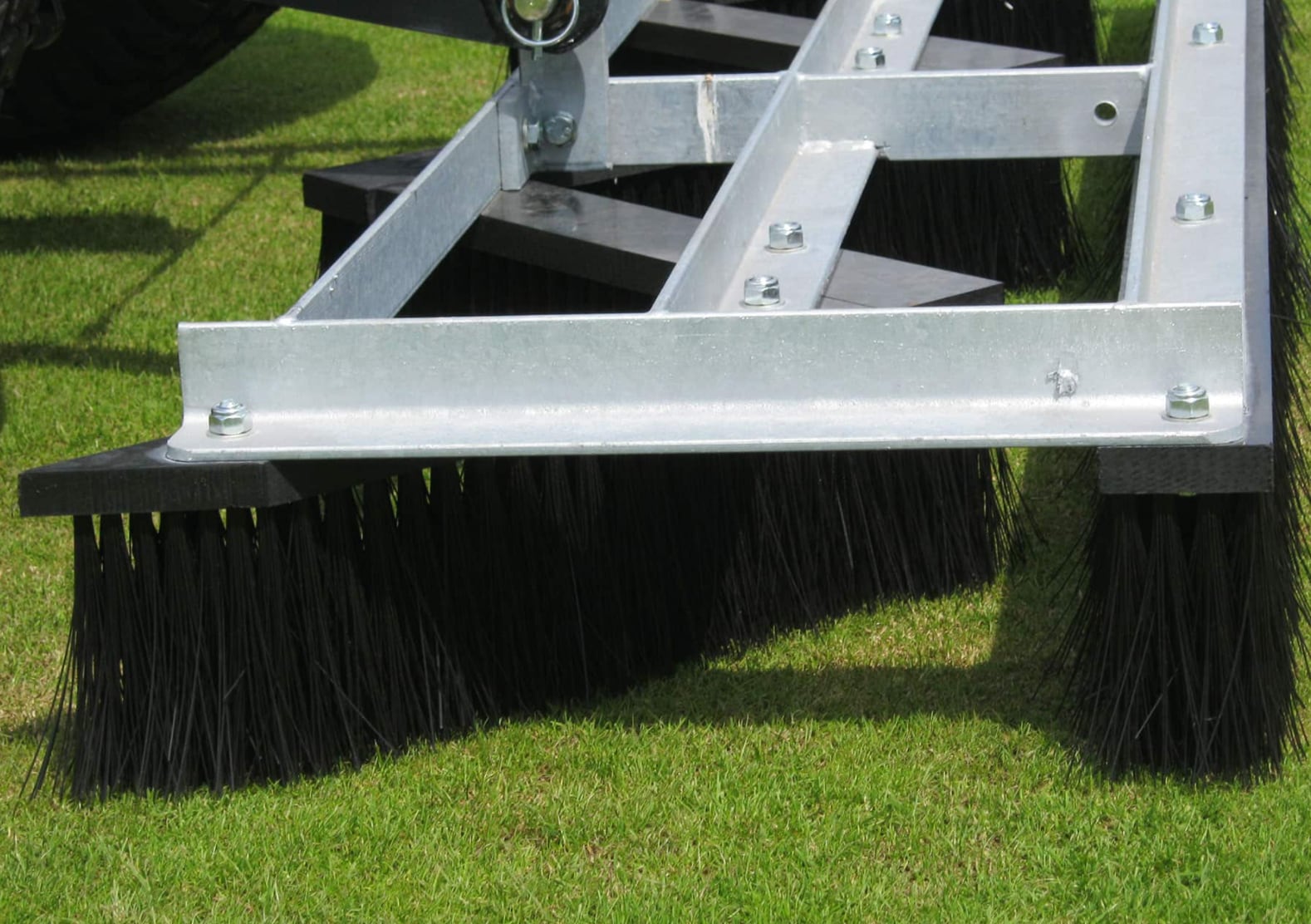 The CAMPEY Triple V Brush is a tractor mounted implement for brushing in top dressing removing worm cast, standing up grass prior to mowing and general presentation on natural turf.