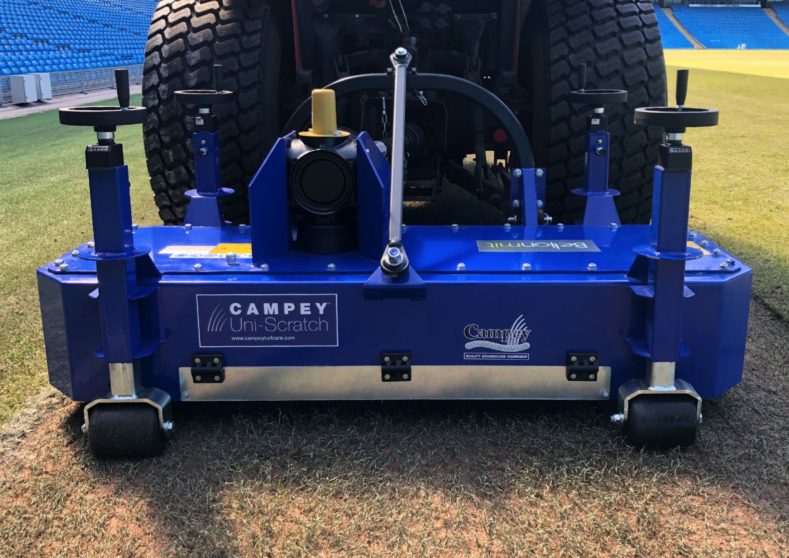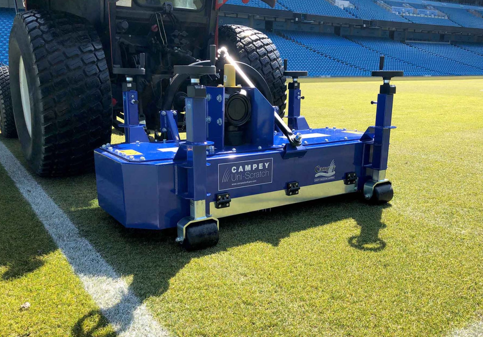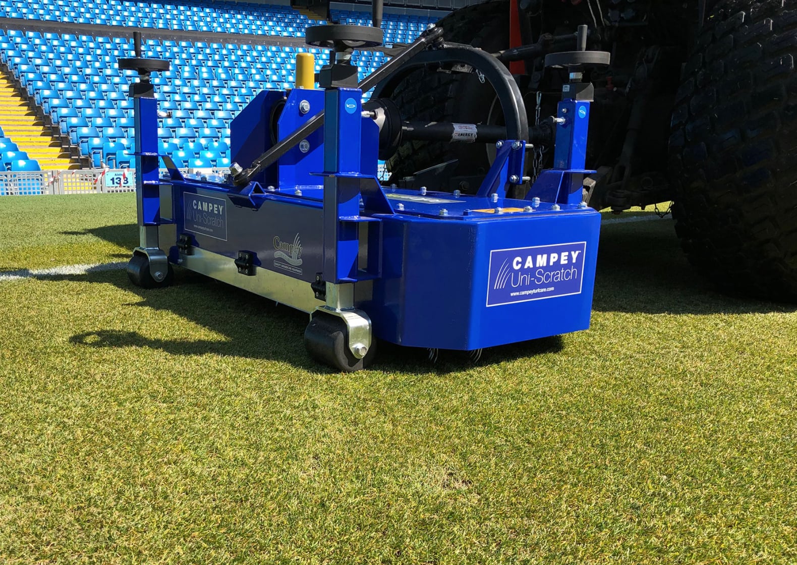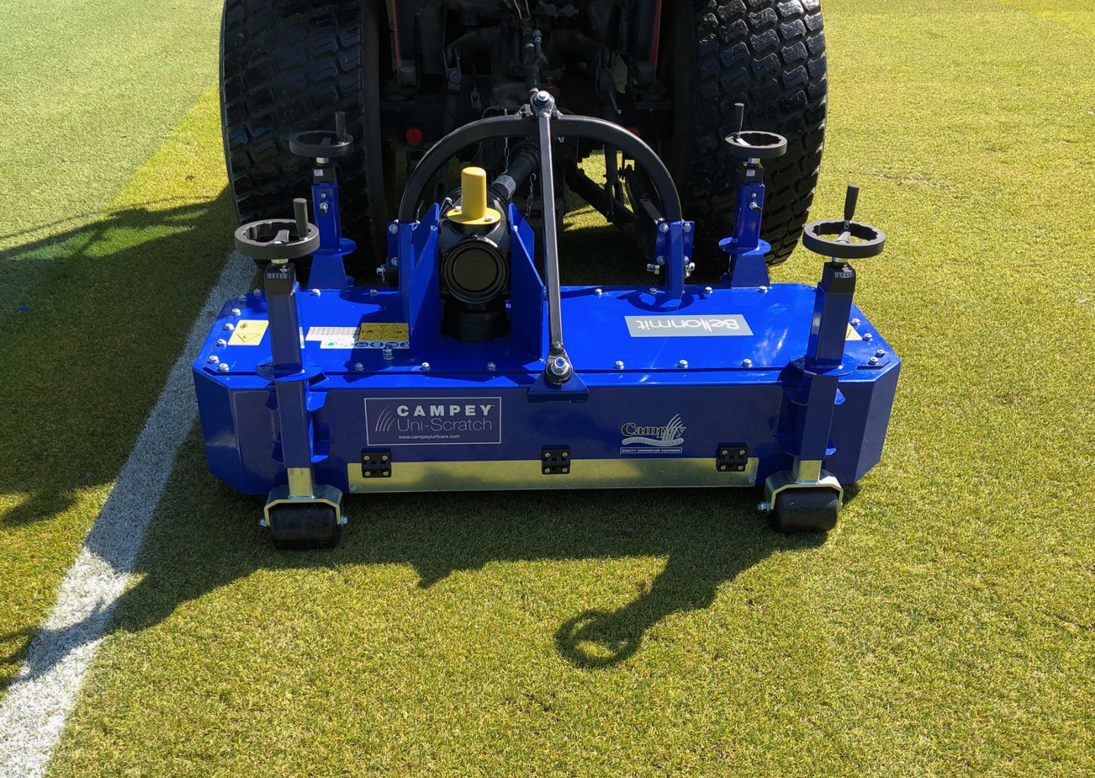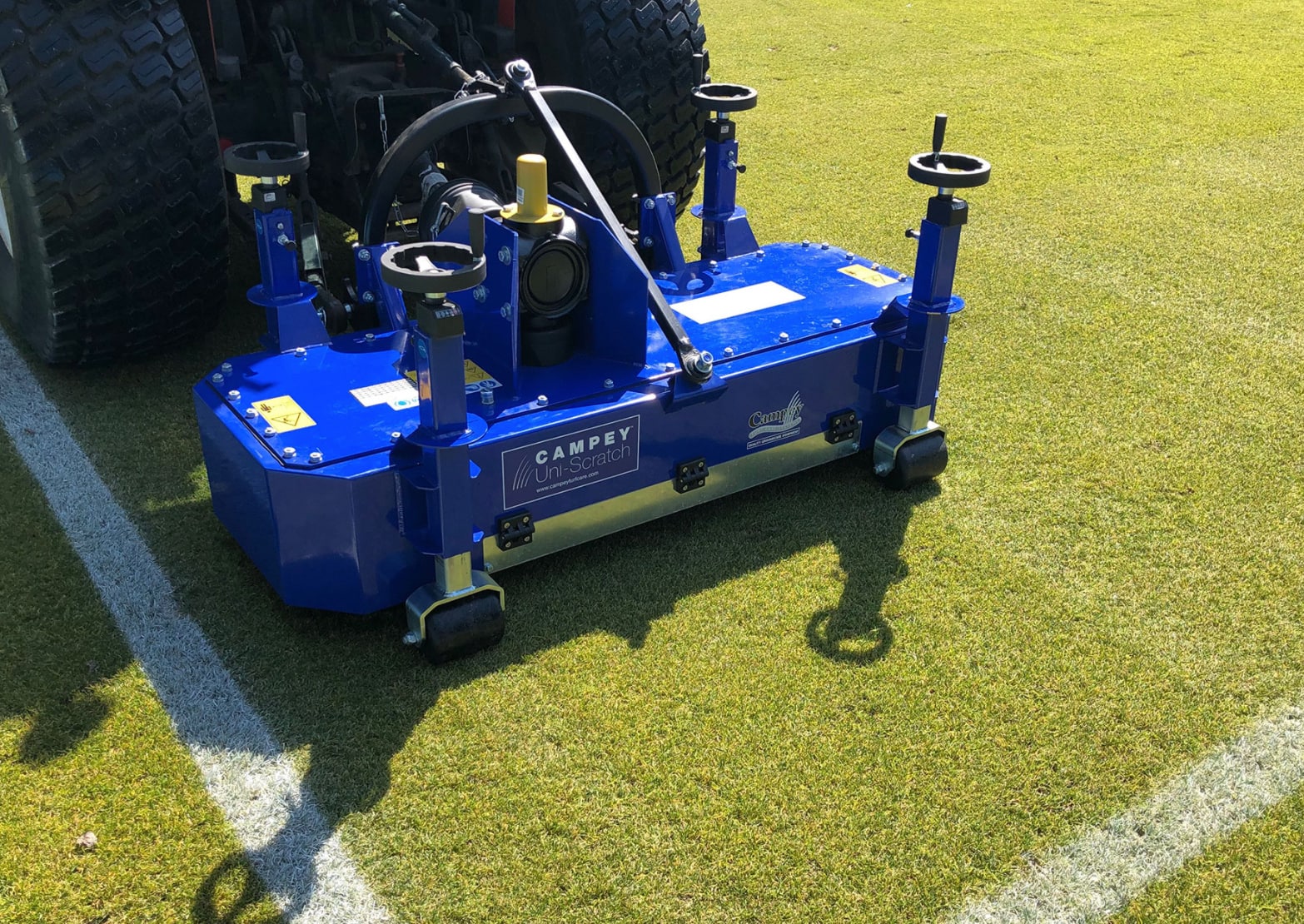 The Campey™ Uni-Scratch™ is the ideal solution for those looking for a professional and effective maintenance of natural and synthetic grass surfaces. The Campey™ Uni-Scratch™ has been developed to infill or refill when installing or looking after synthetic grass carpets. It can also be used for the final organic matter removal on natural grass hybrid carpet pitches when carrying out annual renovations. The Uni-Scratch™ moves on 4 supporting rollers which are adjustable in height to allow the most appropriate working depth. The rotors can be equipped with springs or linear brushes in PPL. Rear linkage to tractors of at least 30hp.