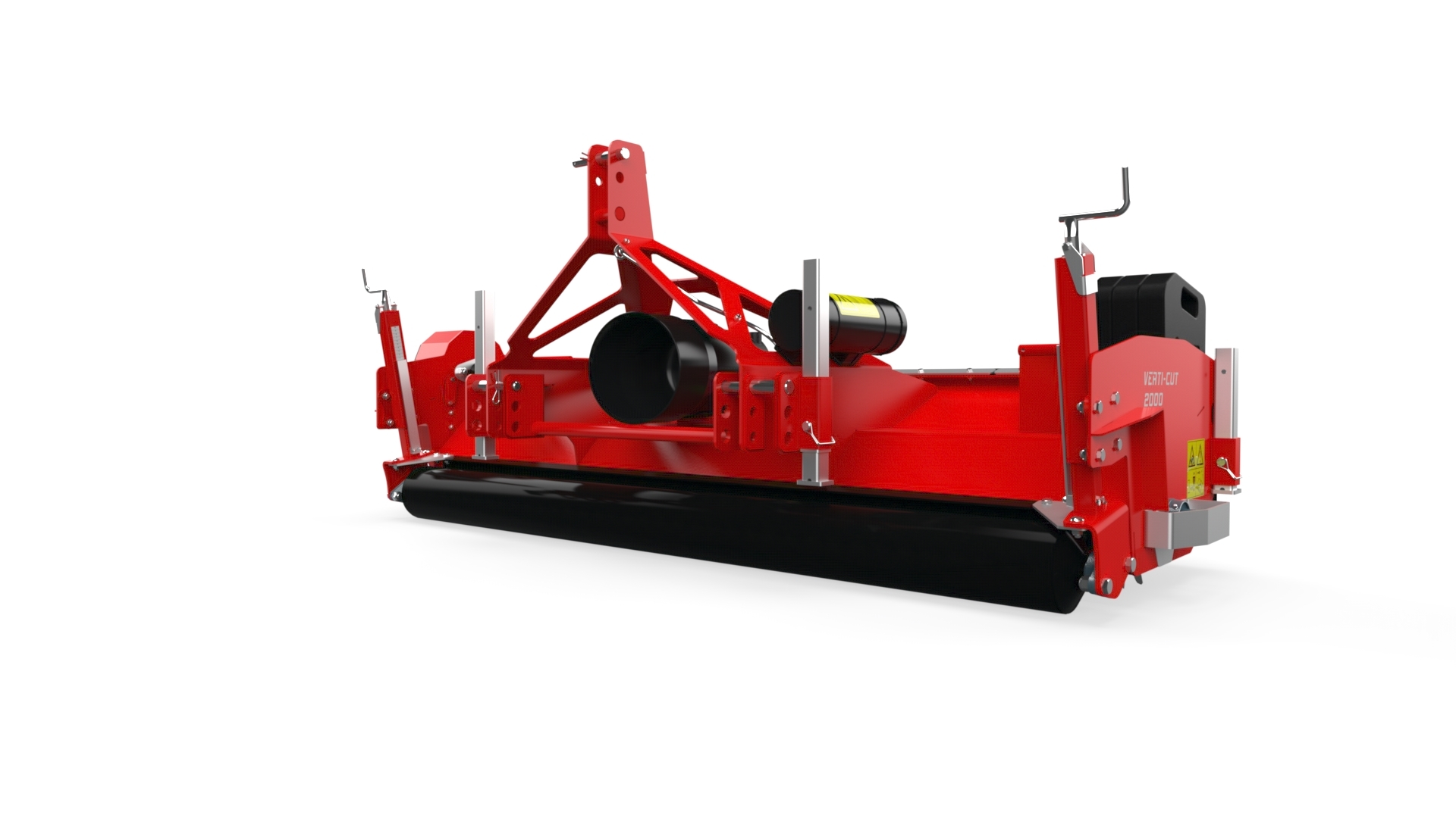 The Verti-Cut 2000® is the ideal deep scarification tool, the 2mm (0.07”) wide blades work to a depth of 50mm (1.9”). The front roller not only allows the Verti-Cut to cope with undulations but also controls the working depth with precision. Blade spacing can be changed with the optional spacer kit.