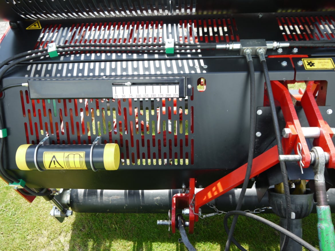 SKU 111.122.016 WORKING WIDTH (M) 1.6 WORKING WIDTH (INCH) 63 MAX. WORKING DEPTH (MM) 225 MAX. WORKING DEPTH (INCH) 9 WORKING SPEED AT HOLE SPACING 65 MM 1.79 WORKING SPEED AT HOLE SPACING 2-1 2 INCH (MPH) 1.1 WEIGHT (KG) 952 WEIGHT (LBS) 2094 HOLE DISTANCE WITH 12 MM TINES (MM) 65 HOLE DISTANCE WITH 1 2 X 6 INCH TINES (INCH) 2.5 HOLE DISTANCE WITH 18 MM TINES (MM) 130 HOLE DISTANCE WITH 3 4 X 9 INCH TINES (INCH) 5.11 HOLE SPACING DISTANCE DRIVING DIRECTION (MM) 25 - 195 HOLE SPACING DISTANCE DRIVING DIRECTION (INCH) 1 - 7.5 MAX DIAMETER SOLID TINE (MM) 24 x 225 MAX DIAMETER SOLID TINE (INCH) 1 x 9 MAX DIAMETER HOLLOW TINE (MM) 25 x 225 MAX DIAMETER HOLLOW TINE (INCH) 1 x 9 MIN. TRACTOR HP REQUIRED 45 MIN. LIFTING CAPACITY (KG) 1050 MIN. LIFTING CAPACITY (LBS) 2314 MAX. CAPACITY WITH SPACING 65 MM (M² HR) 2796 MAX. CAPACITY WITH SPACING 2-1 2 INCH (FT² HR) 30096 THREE-POINT HITCH 3-Point CAT 1/2 RPM MAX. 540 GEARBOX OIL 80W90 5.5 Liter LUBRICANT EP 2 DIMENSIONS (WIDTH MM) 1700 DIMENSIONS (HEIGHT MM) 900 DIMENSIONS (LENGTH MM) 1210 DIMENSIONS (WIDTH INCH) 66.9 DIMENSIONS (HEIGHT INCH) 35.4 DIMENSIONS (LENGTH INCH) 47.6 SLIP CLUTCH SETTING 550 NM (4868 lbf-in)